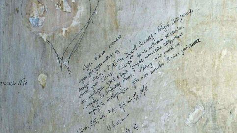 Gedenkstätte Gestapogefängnis. Inschrift des Gefangenen Askold Kurow