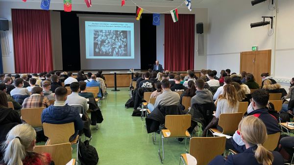 Bild 4: Die Aula der Schule war beim Vortrag mit 150 Schülern besetzt