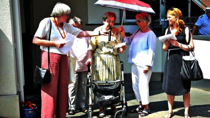 An der Verlegung des Gedenksteins konnte auch noch die 88jährige Schwiegertochter Ingeborg Hanßen teilnehmen, die sich sehr für die nachträgliche Aufarbeitung des Schicksals und die Ehrung Hubert Hanßens bedankte.