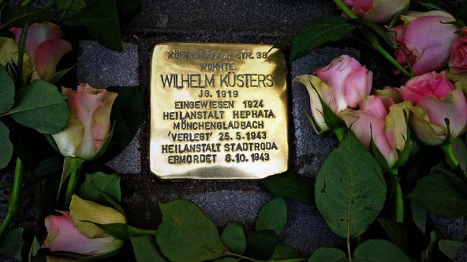 Wilhelm Jakob Küsters, im Februar 1919 in der nicht mehr existierenden Königgrätzer Straße geboren, wurde mit 5 ½ Jahren als behindertes Kind, das zwar laufen, aber nicht sprechen konnte, zur Förderung in die Evangelische Bildungs- und Pflegeanstalt Hephata nach Mönchengladbach gebracht. Da er auf ständige Hilfe und Betreuung angewiesen war, blieb er dort und wuchs heran. Mit 24 Jahren wurde er im Mai 1943 zunächst nach Hildburghausen, kurz darauf in die Anstalt Stadtroda in Thüringen verlegt, wo er – inzwischen schwach und apathisch – am 6.10.1943 „unter den Zeichen der Herzschwäche“ plötzlich verstorben ist. Im Telegramm an seine Eltern stand „Lungenentzündung“.