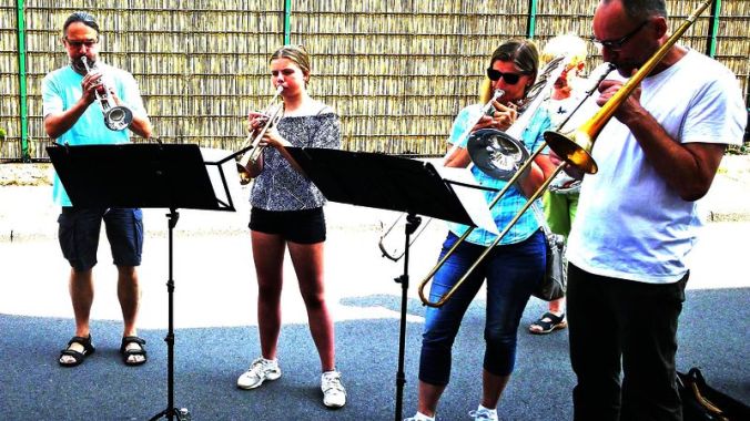 Alle vier Verlegungen wurden durch eine Bläsergruppe unter Leitung von Stefan Büscherfeld musikalisch einfühlsam begleitet.